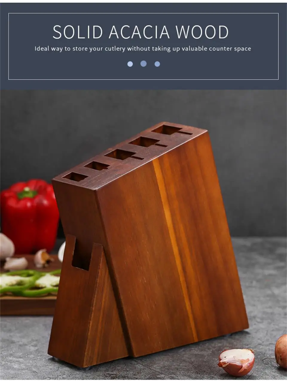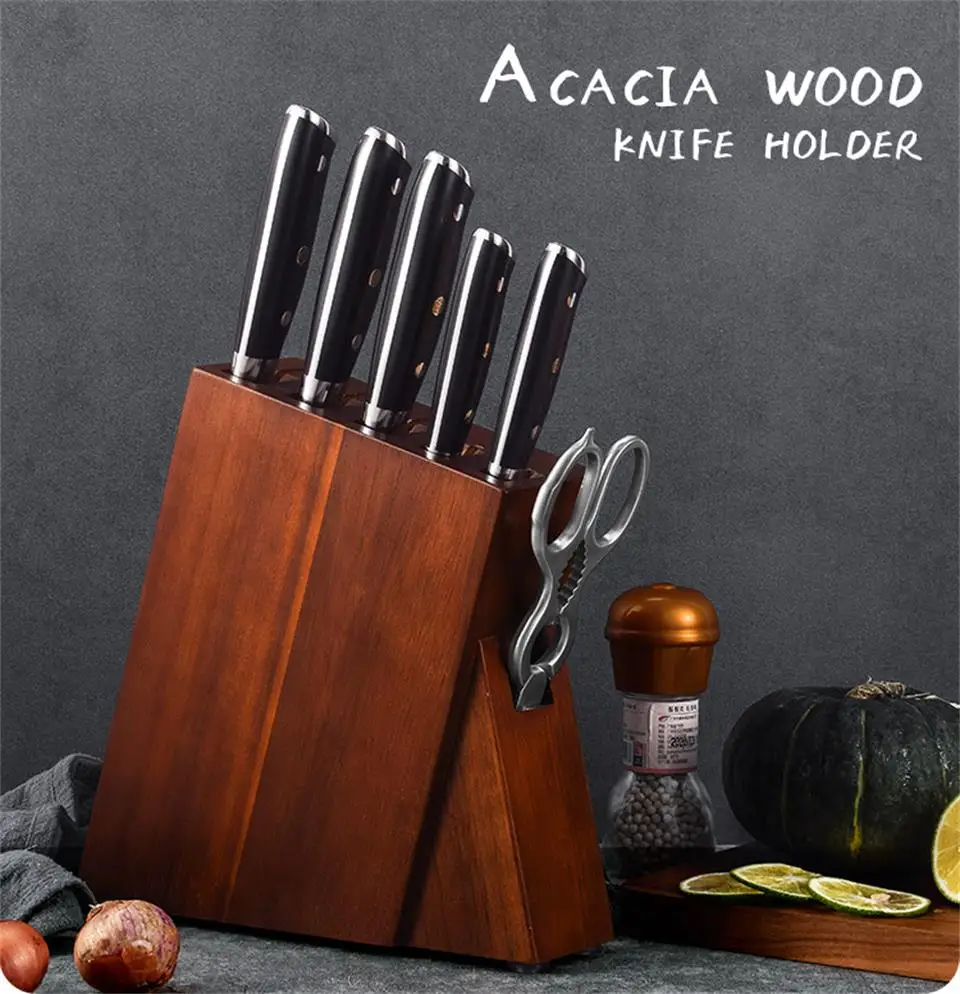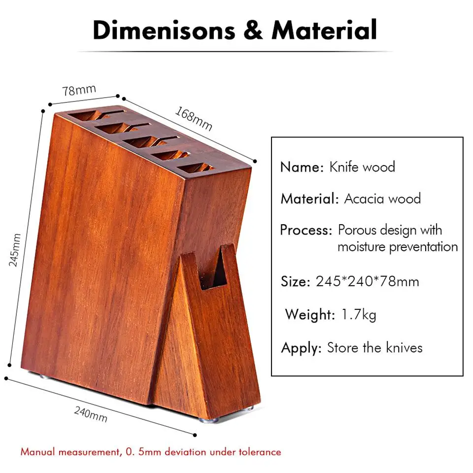 Perfect for both professional chefs and home cooks, the Acacia Wood Knife Holder is a stylish, practical addition to any modern or traditional kitchen—where craftsmanship meets convenience.